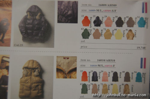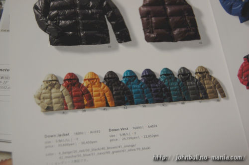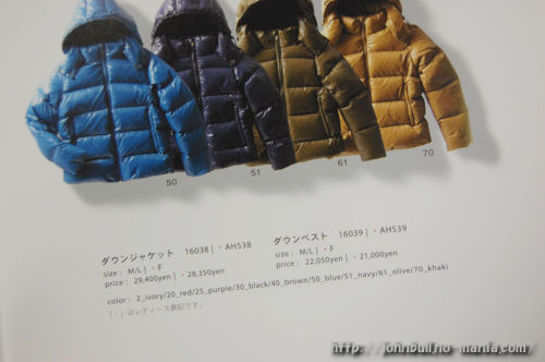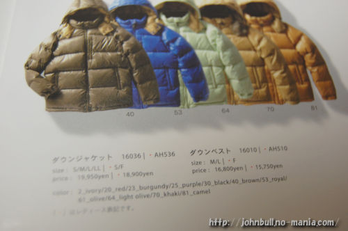 過去のJohnbullダウンジャケットの品番(価格、サイズ)をメモ